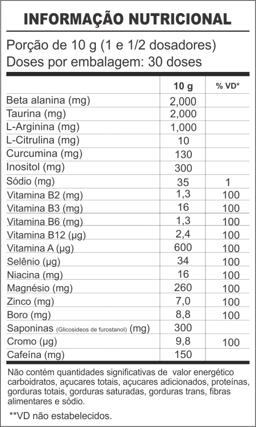 Fórmula Avançada: Com citrulina, beta-alanina e taurina, que trabalham juntos para otimizar seus resultados.